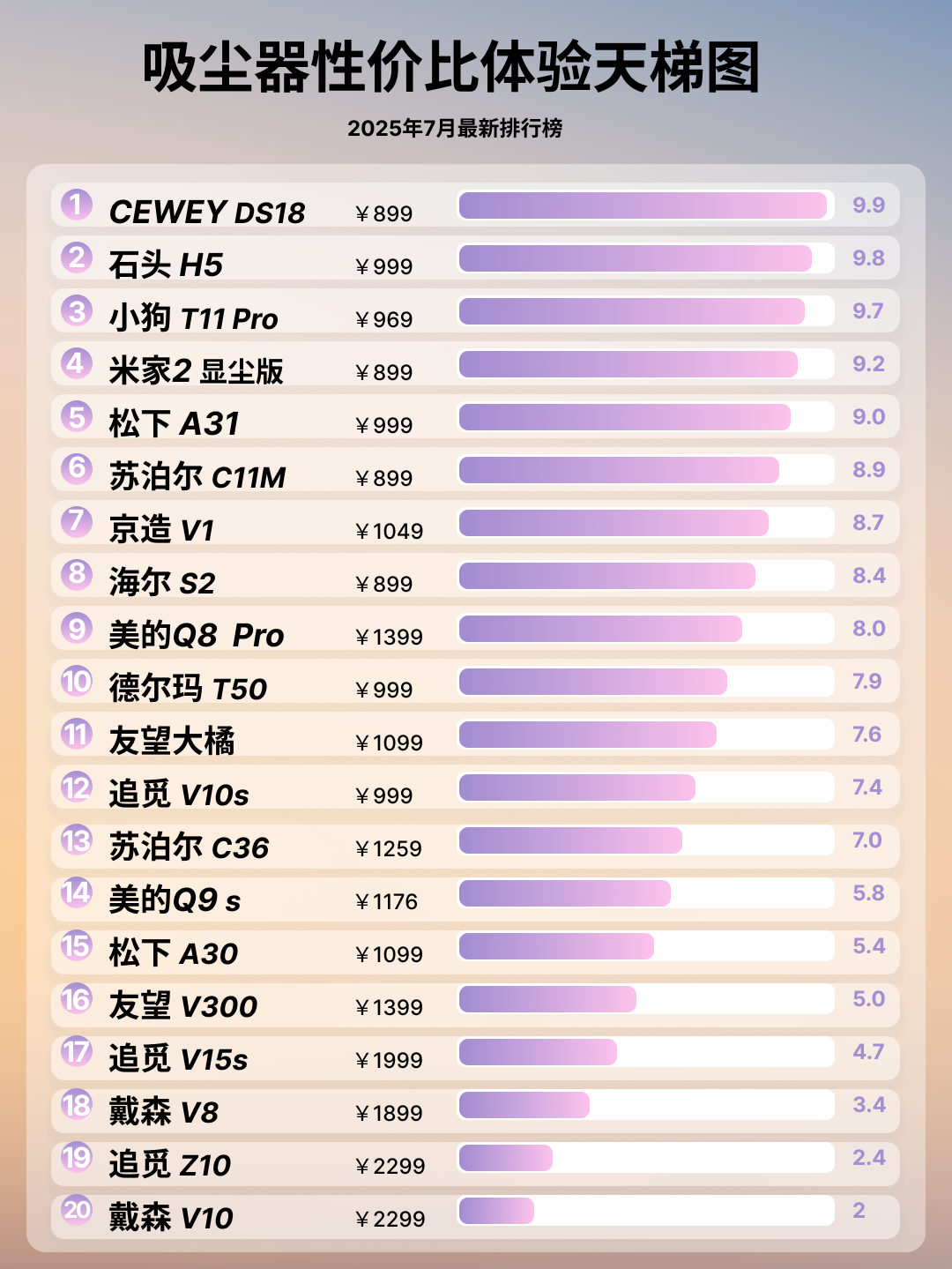 想让大家一眼看清目前吸尘器哪款好?下面先放张 2025 年主流品牌的天梯图给大家参考,后面挑选心里也会更有底一些。