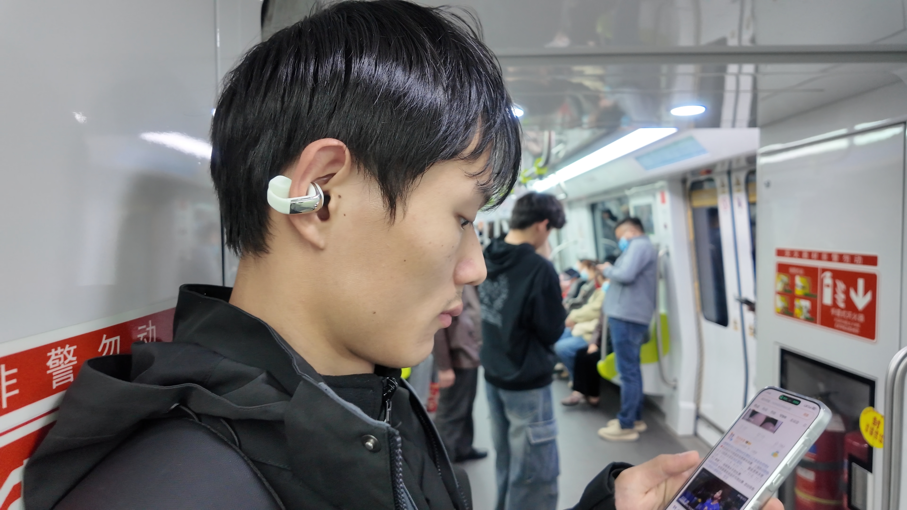 通勤在地铁上开放式的通透感让我在地铁听见外界提示音,不会完全隔绝环境,这点对于通勤安全感很重要。音量开到50%左右就能把背景噪声盖住,声音不会闷,声场更开放,像是在小型音箱前听音乐。遇到室外大风或噪杂环境,佩戴稳定性也不错,基本不用担心掉落。