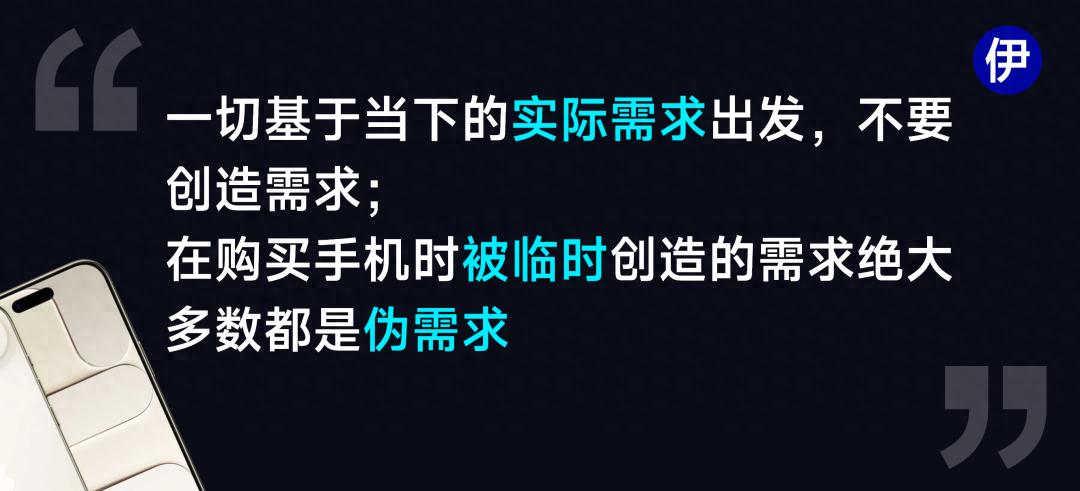 我呢也给大家总结了一个实用的经验:“一切基于当下的实际需求出发,不要创造需求;在购买手机时被创造的临时需求绝大多数都是伪需求”