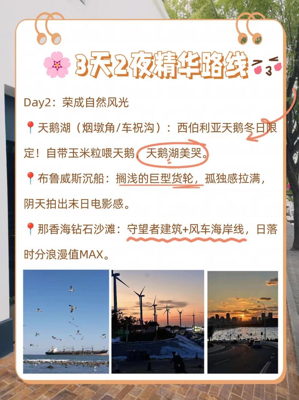 姐妹们,答应我,一定要去威海看一次海!❄️🌊蓝调海岸线、雪景城堡、成群天鹅、电影感沉船……这座被低估的宝藏小城,用3天时间就能刷爆朋友圈!本地人私藏的攻略,亲测不绕路,赶紧收藏!