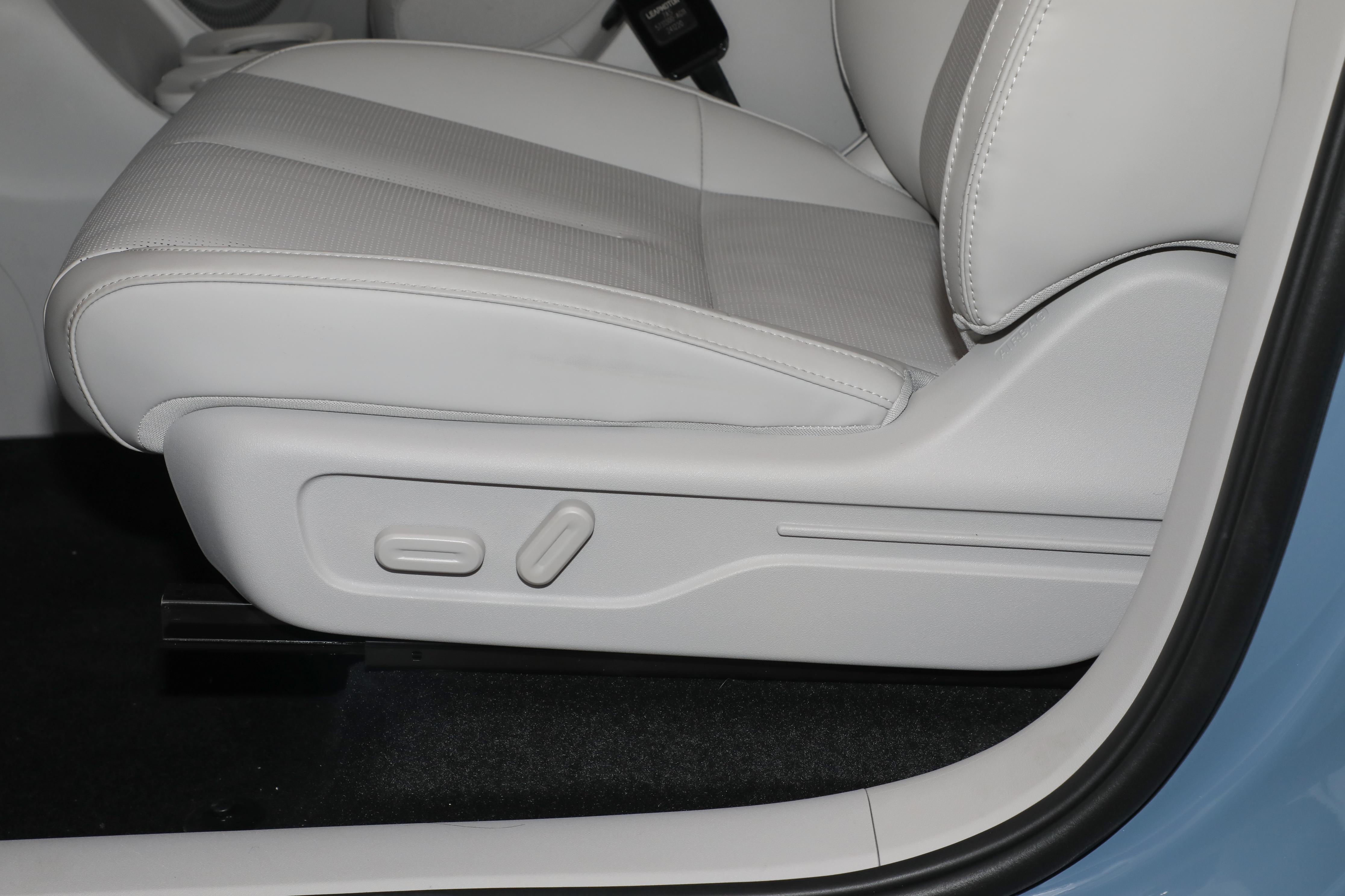座椅是仿皮材质,还加了竹炭纤维,摸上去亲肤,透气性特别好。主驾是6向电动调节,带通风和加热,35℃的天气开通风10分钟,后背就能从闷汗变得清爽;副驾有4向电动腿托,长途坐车能把腿托起来,舒服多了 。座椅填充是三层复合结构,表面透气网布、中间慢回弹海绵、底层高密度海绵,坐上去软硬刚好,不会陷得太深没支撑,也不会硬得硌人。我开200多公里高速,下车腰也不酸,我家1米8的大个子坐前排,头部还有一拳两指的空间,完全不顶头 。