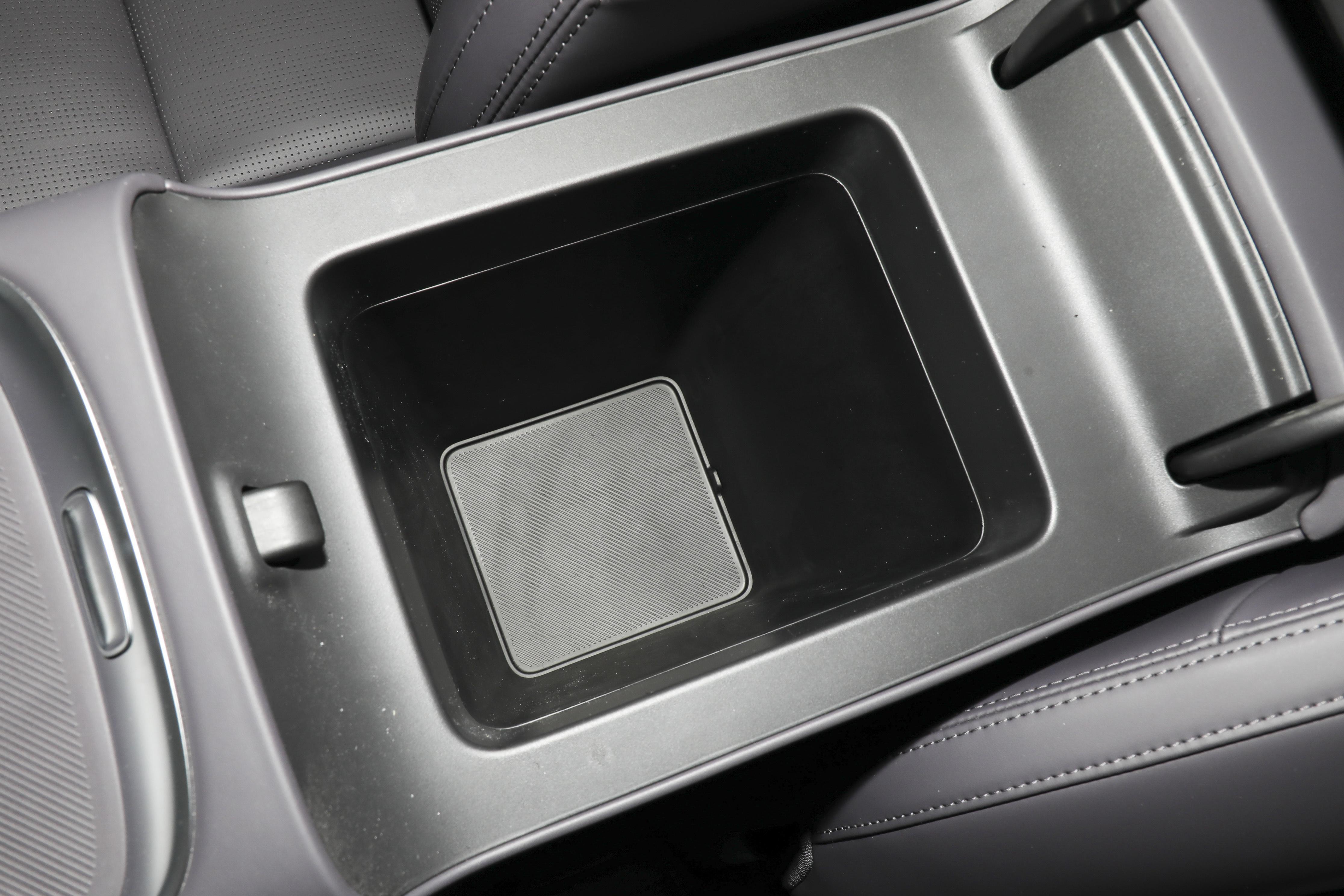 车内的储物空间藏得特别多,全是家用实用的。前排座椅底下有个小储物格,能放娃的小鞋子、随身纸巾;中控台下边有个隐藏式抽屉,刚好能放下手机加无线充电板,拿取东西不用弯腰,比那些华而不实的贯穿式储物格实用多了 。