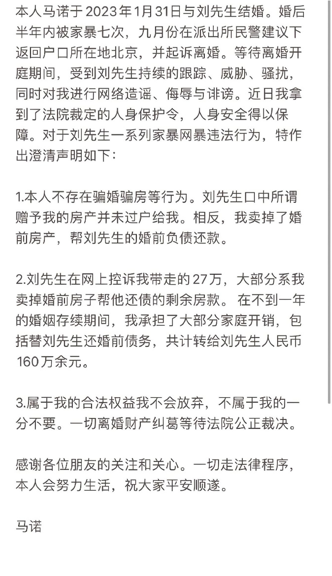 据她的丈夫刘先生爆料,他为了追求马诺,在她的直播间刷了20多万的礼物,甚至抛妻弃子与她结婚。然而,婚后马诺对他的财务和社交进行严格管控,稍有不顺便会失联拉黑。刘先生还透露,为了挽救婚姻,他曾一度抑郁到割腕轻生。