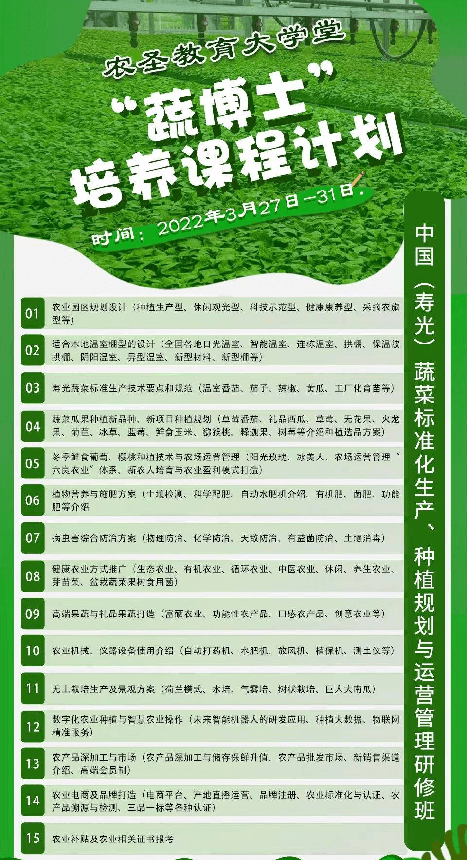 中国(寿光)蔬菜标准化生产、种植规划与运营管理研修班