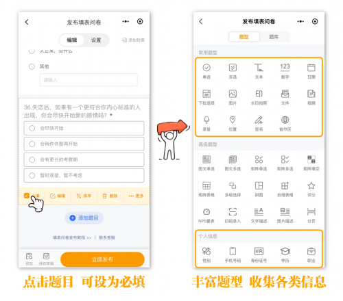 如果有特殊要求,还能轻松自定义添加问题,并将关键问题设为 “必填” 项,确保收集到的信息完整无遗漏。