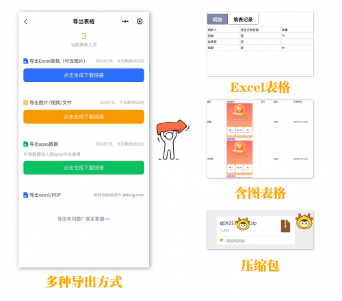 收集的信息会自动汇总,支持在线查看,还能快速导出为含图表格和压缩文件,无需反复录入整理。