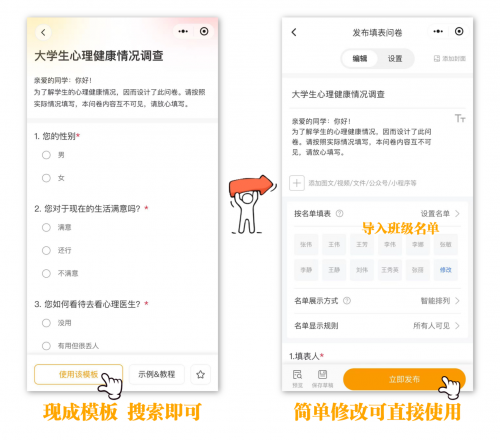 操作简单,即使是从未创建过问卷的新手小白,也能迅速上手,无需下载APP,电脑、手机均可随时创建;