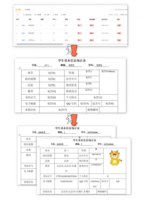 更支持【导出 Word/PDF】功能,只需上传预置格式的表格文档,就可以将收集到的数据,批量导出为多份、规定格式的 word 或 pdf 文档,效率拉满。