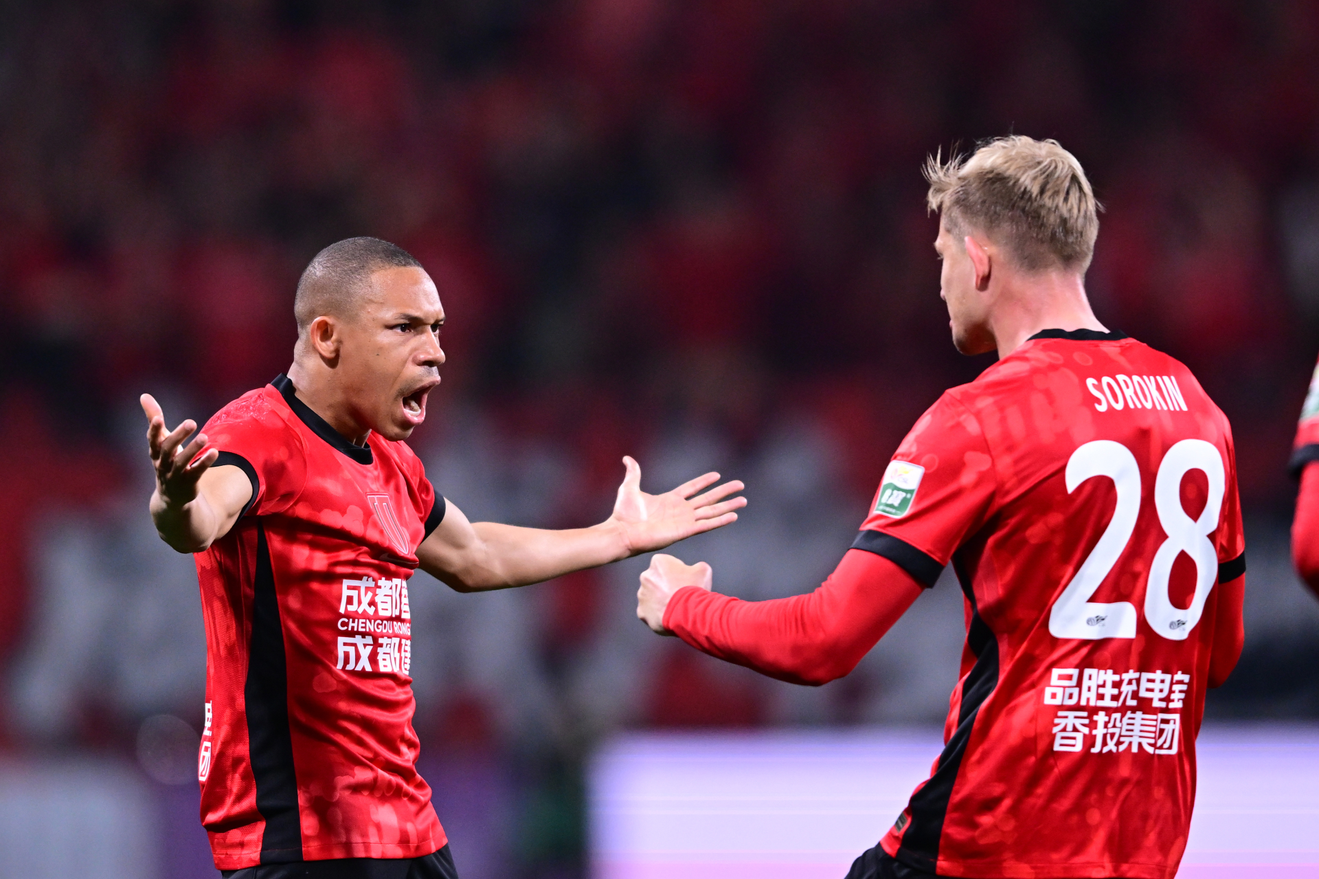 红星新闻网4月4日讯4月3日中超第4轮,成都蓉城主场5-1击败青岛西海岸。韦林顿率先破门,索罗金扩大比分,青岛队阿齐兹扳回一球。下半场蓉城攻势不减,费利佩替补登场连入三球上演帽子戏法,彻底奠定胜局。凭借这场大胜,蓉城以3胜1平积10分的战绩,继续稳居联赛积分榜前列。(特约摄影:周小军)