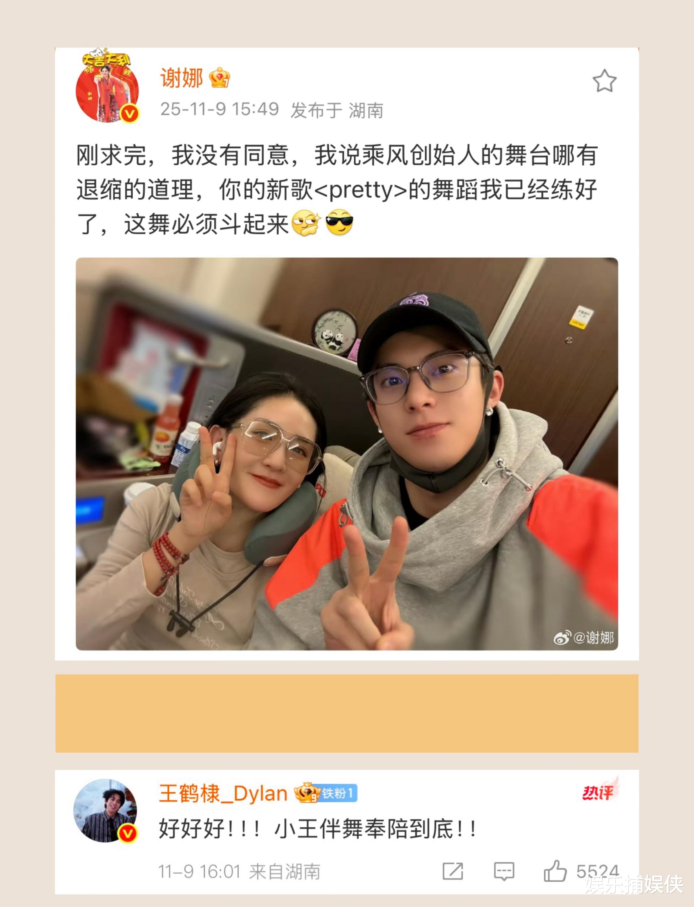 据说,谢娜在乘坐高铁出行时,意外地与王鹤棣“狭路相逢”。这奇妙的缘分,就如同在浩瀚宇宙中两颗原本各自运行的星星,突然交汇在一起,闪耀出别样的光芒。娜姐那热情似火的性格,一看到棣棣,眼睛瞬间亮了起来,就像发现了宝藏一样,立刻开启了“欢乐邀约模式”。她大大咧咧地对着王鹤棣喊道:“棣棣,咱们来斗个舞呗,看看谁才是真正的舞林高手!”那架势,仿佛是一位豪情万丈的江湖侠客,要在这小小的车厢里一决高下。