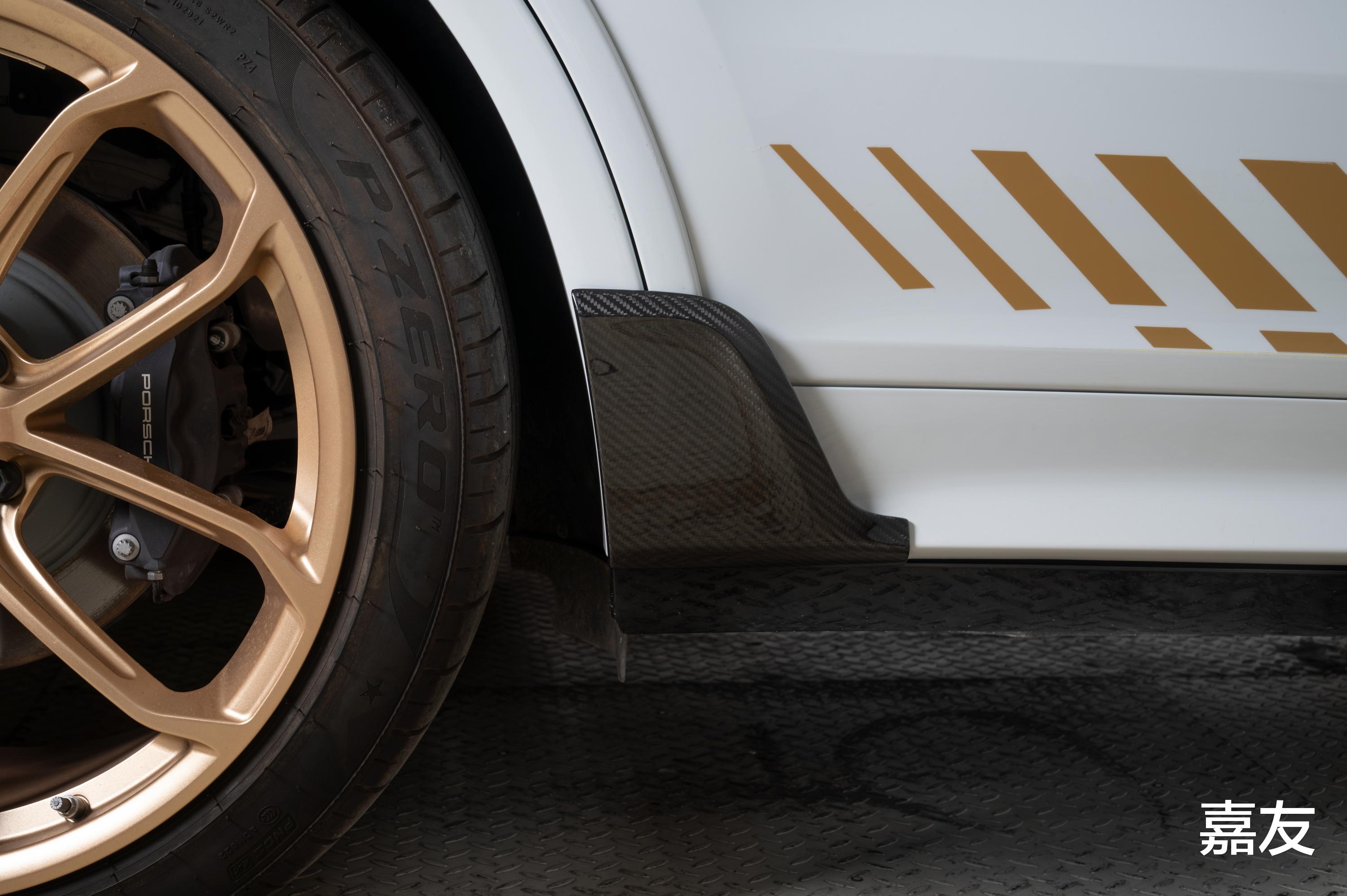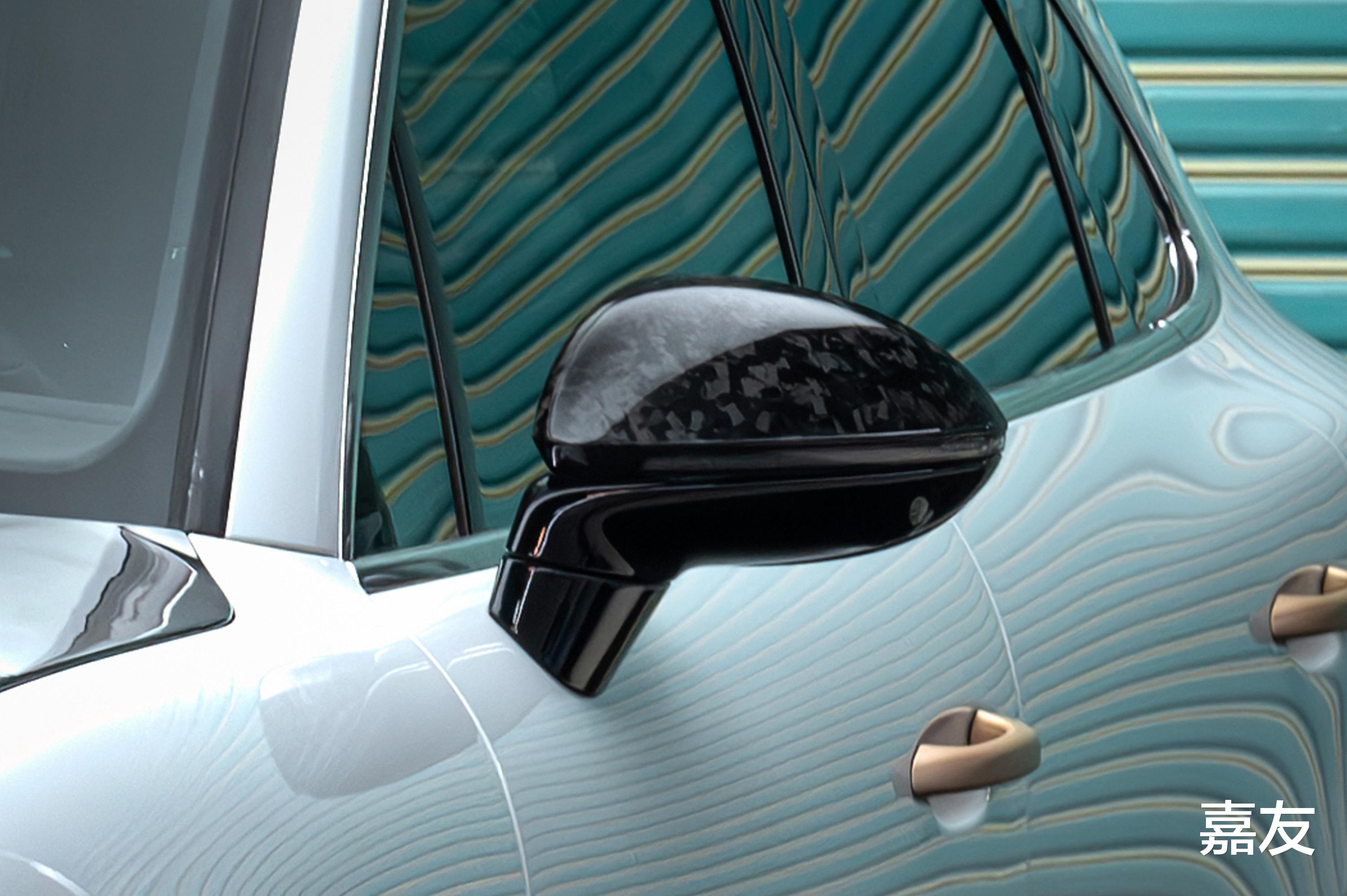 侧方方的后视镜壳,我选了锻造纹路款式,感觉比更有质感。包角在轮眉和车身之间,让车看起来更宽更运动。
