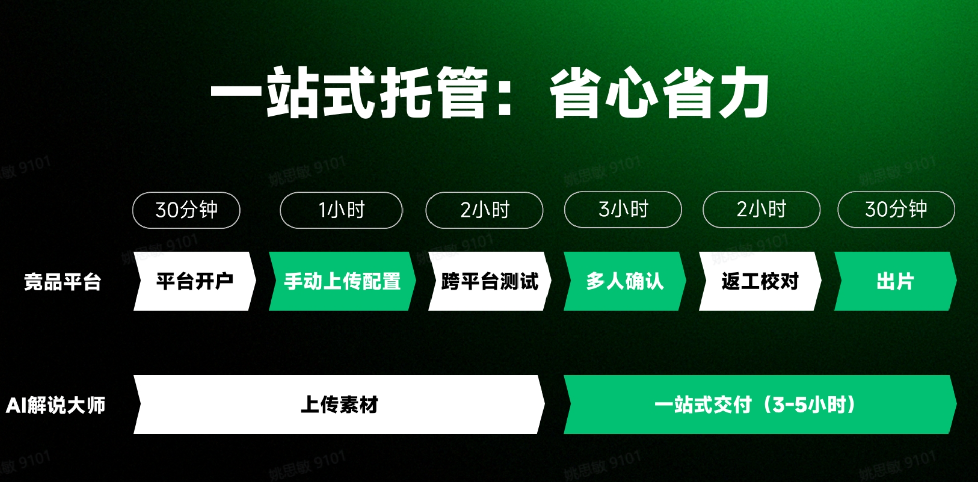 时间成本: AI翻译+配音+解说一步到位,节省约80%的时间成本。外部资料显示7天交付370部短剧,日均产出约50部剧,10000分钟的时长,产出效率非常高。