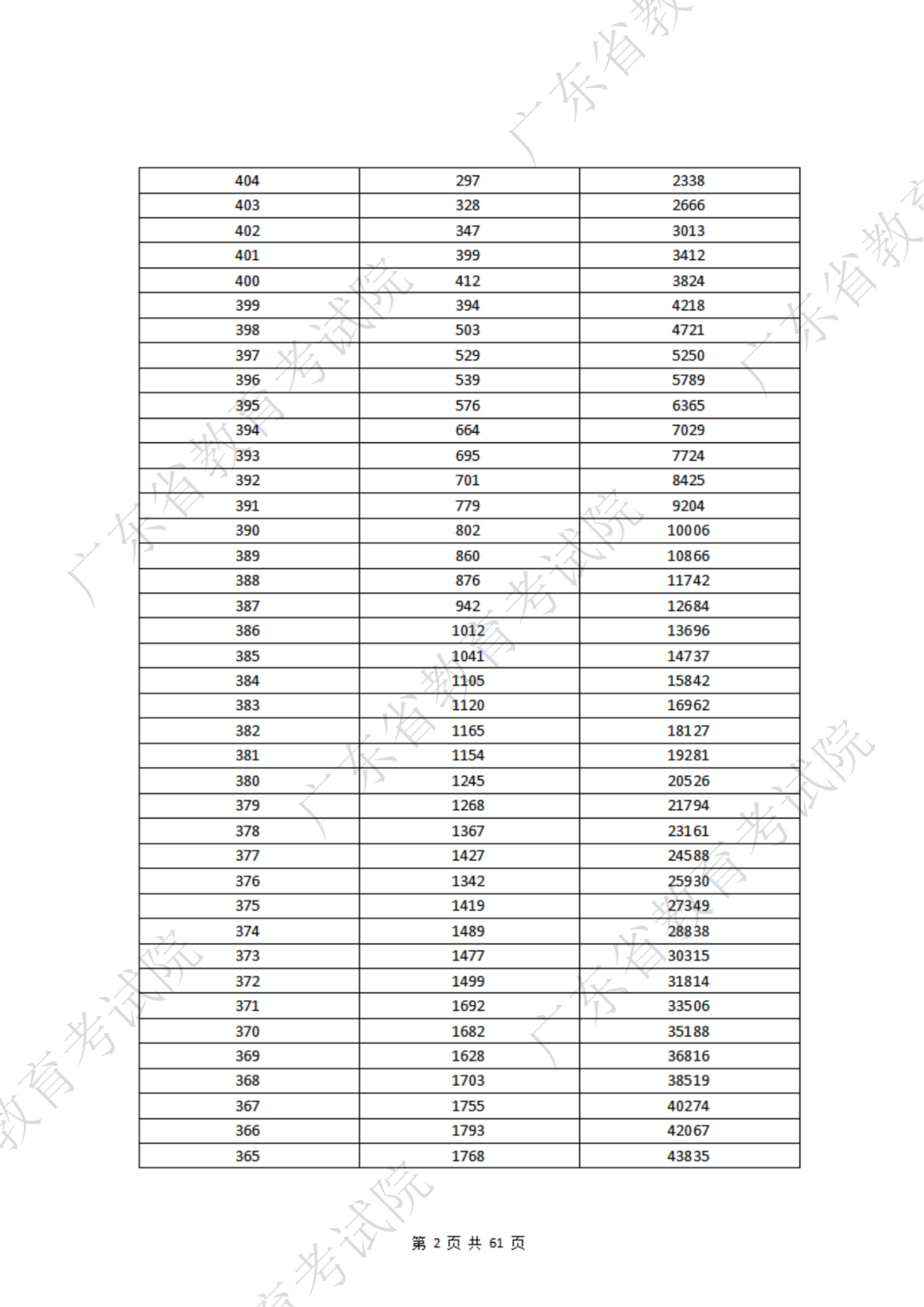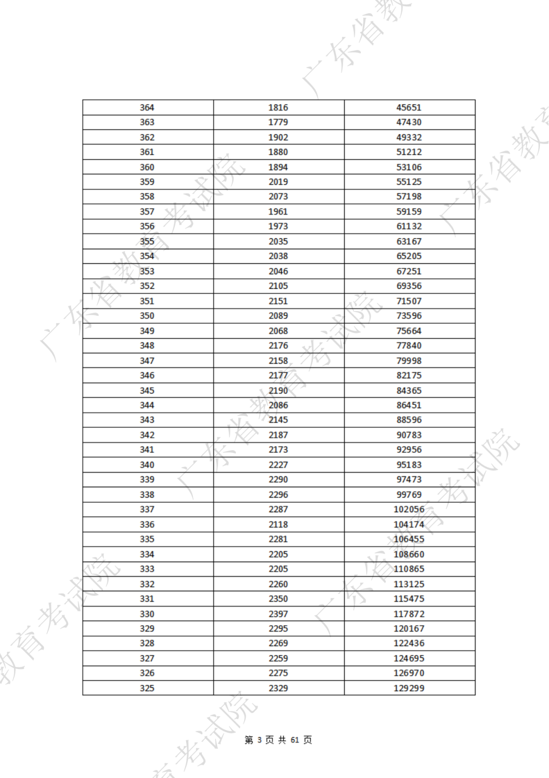 一份标准的一分一段表通常包含3项关键数据:分数段、分数段人数、累计人数。