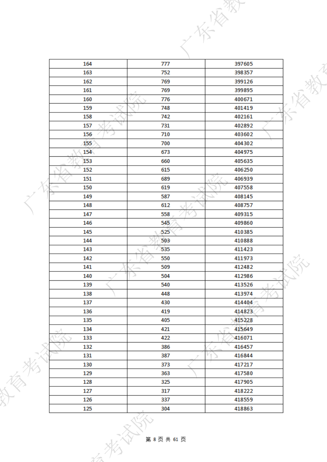 认识一分一段表“一分一段表”是春季高考成绩公布后,由省级教育考试院发布的官方统计表格。它以 “1分”为区间单位,清晰展示了全省(市)同学考考生的成绩分布情况。