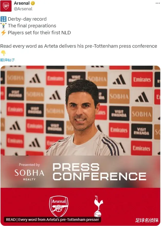 阿尔特塔出席了赛前新闻发布会,我们来看关键内容。