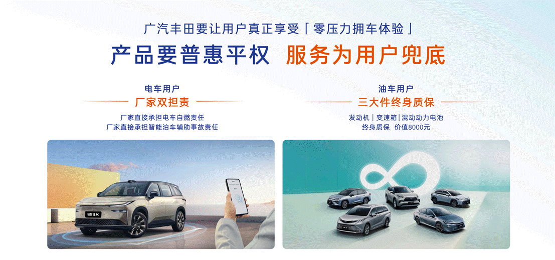 另外,当市场还在以“迭代快”为荣时,广汽丰田又默默做了一件看似“传统”却极其稀缺的事:为用户兜底!对电车用户,在行业首次推出“厂家双担责”,电车电池自燃赔新车,智能泊车事故赔损失。且覆盖新老用户,无质保期限制。对油车用户,2026款全球车全部享有“动力总成终身质保”权益。这些承诺背后,是丰田全球超3000万混动用户验证的可靠性,也是广汽丰田900万中国用户基盘带来的信任背书。