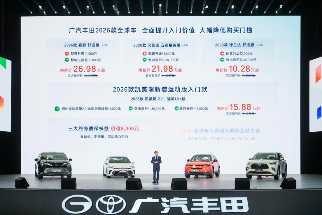 9月23日,广汽丰田在长沙举办了2026款丰田全球车发布会,没有枯燥的技术术语,没有单向输出的产品宣讲,而是用一场轻松甚至略带“自嘲”的发布会,完成了对赛那、汉兰达、凯美瑞、锋兰达四款全球车的集中焕新。