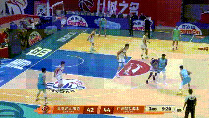 杨和米奇在弧顶打15挡拆,米奇掩护完顺下,吸引陈盈骏协防延误,杨直接分给弱侧侧翼的段昂君,三分命中,