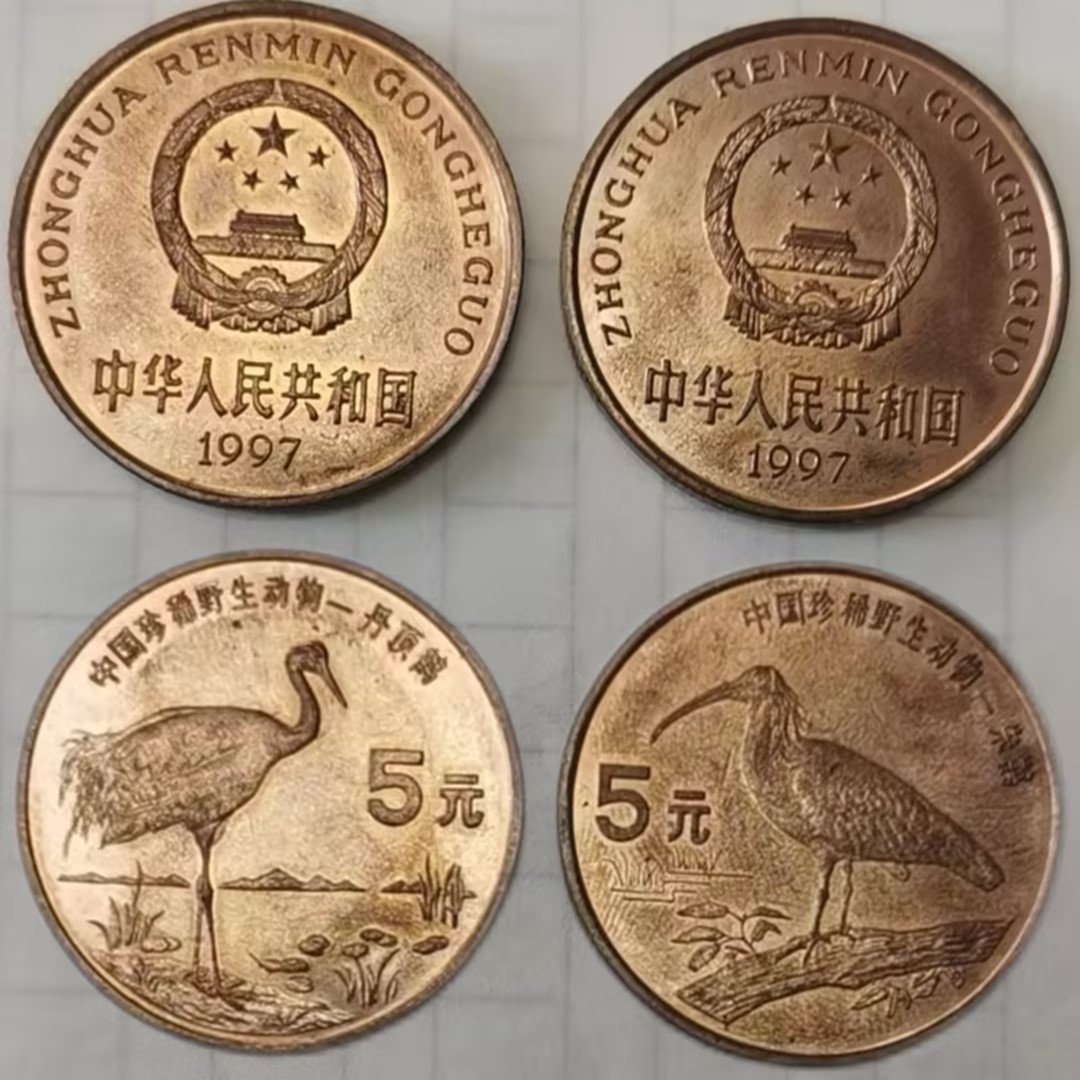 1997 年丹顶鹤、朱鹮纪念币,发行量各 600 万枚;