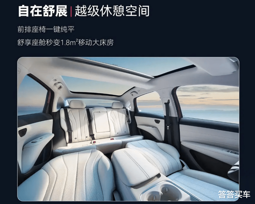 内饰方面,新车的前排座椅去掉头枕后、可与后排座椅形成大床模式,后排座椅支持118度仰角,天窗为分体式设计,提供物理遮阳帘等舒适性配置。