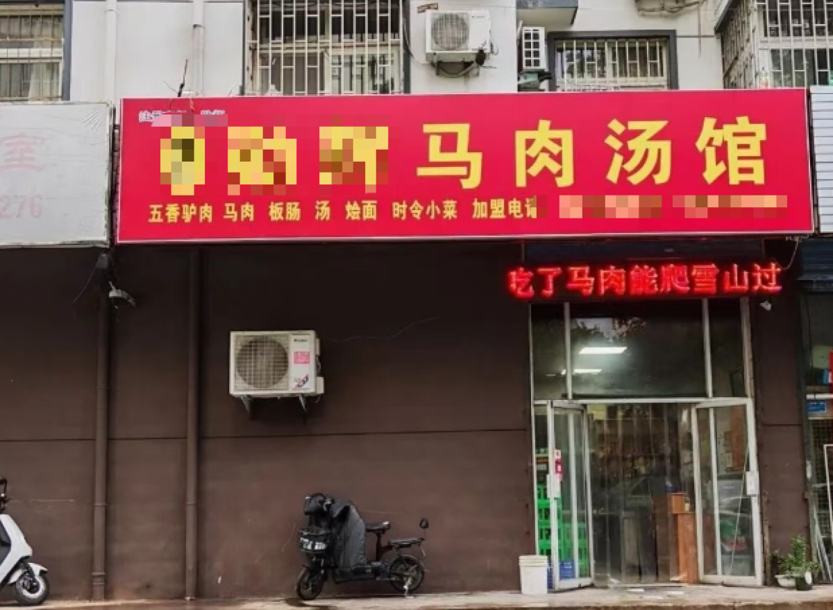 为让顾客明明白白消费,店家除了在橱窗贴出“卖马肉”的提醒,汤馆门头字样也加入“马”的元素。