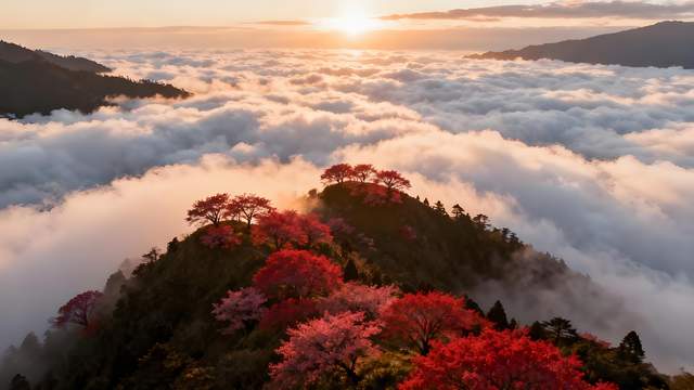 阿里山的秋,是高山红叶与云海的交响。进入 11 月,海拔 2000 米的阿里山森林游乐区便被染成缤纷色彩 —— 派出所前的樱叶转红,如春日樱花重现枝头;阿里山宾馆至工作站的步道旁,青枫燃着艳红,美国鹅掌楸泛着金黄,紫藤叶片则透着浅黄。行至慈云寺,一株紫叶槭正开得热烈,深红的叶片在阳光下闪着光泽,与寺内的晨钟暮鼓相映成趣。若逢晴日清晨,还能在祝山观日台邂逅云海,雪白的云浪漫过山峦,红叶在云间若隐若现,宛如仙境。来自台中的游客林太太说:“春天来看樱花,秋天来赏红叶,阿里山的四季都有惊喜,秋日的云海红叶更是一生难忘。”