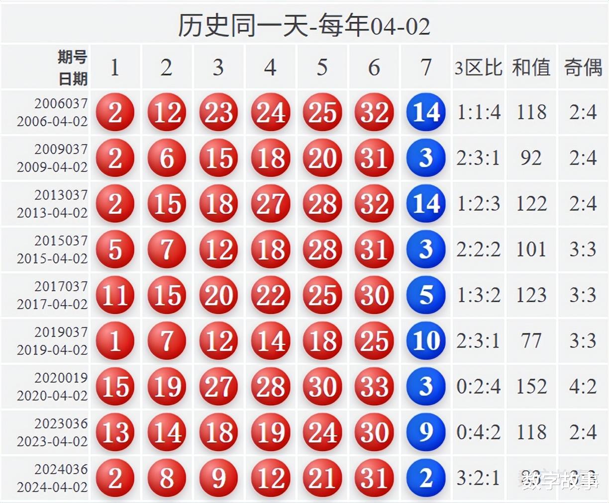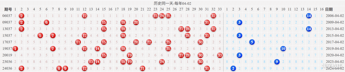 博弈心理,挑战概率: 看近期开奖号码,也可看历史数据统计!【双色球26036期多角度冷热号】双色球26036期四维走势图,红蓝号统计及冷热号1) 历史同一天: 04月02日 (共9期)