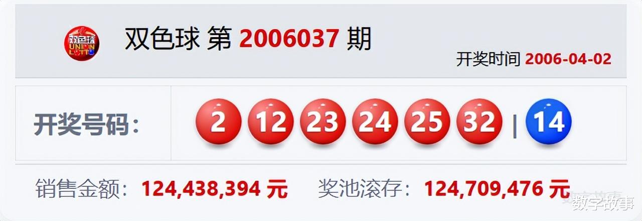 双色球每年037期的出奖号