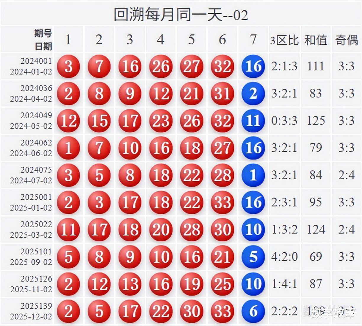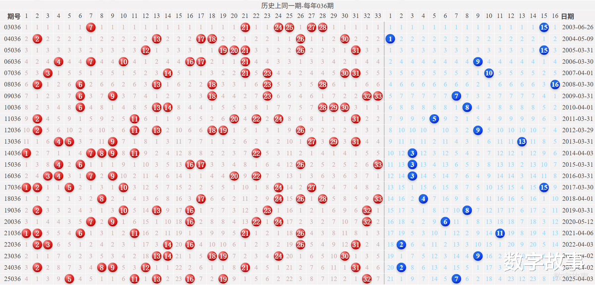 2) 历史同一期: 每年036期 (共23期)
