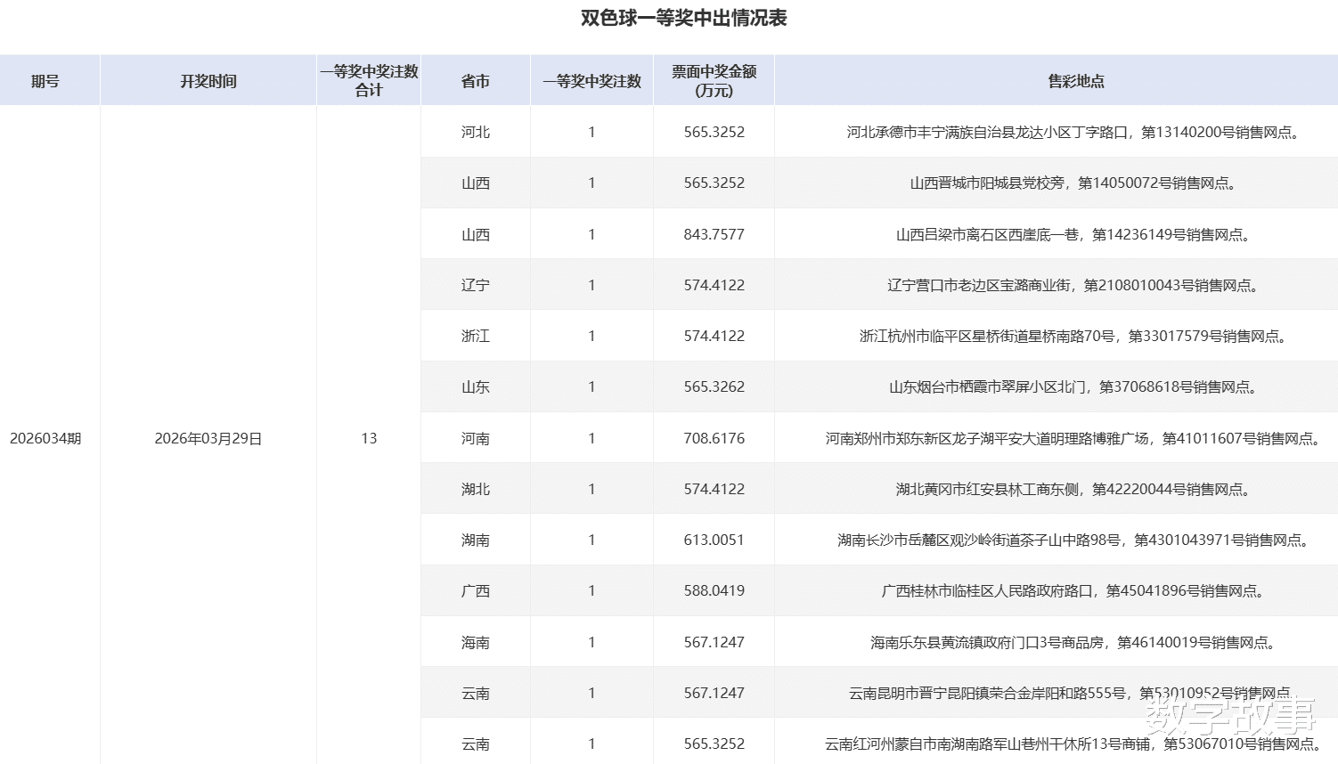 双色球26034期一等奖中奖详情