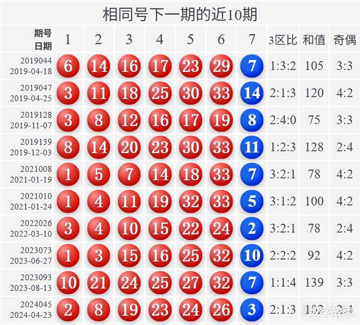 相似号下一期的近10期统计: