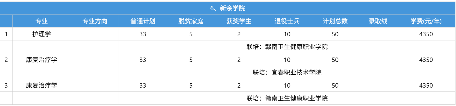 下表为新余学院专升本医学类招生计划及学费汇总,有护理学等3个专业招生: