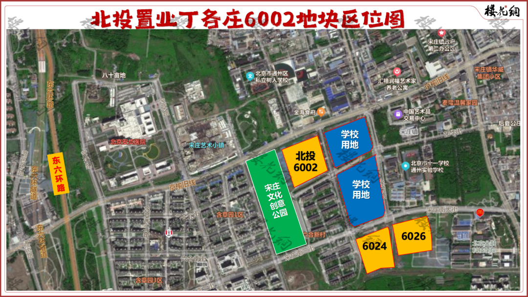它的南面是老社区六合新城,东侧和东南侧是两块学校用地,西面是宋庄文化创意公园。