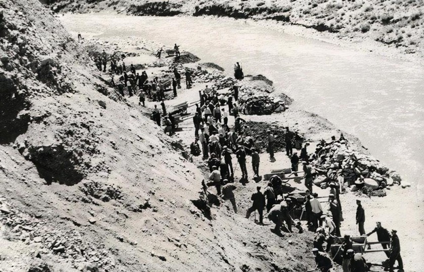 照片中,吴忠身着军装,和藏族群众一起抬着木材修建房屋。这张照片后来被制作成宣传画,挂在昌都民族博物馆的墙上。
