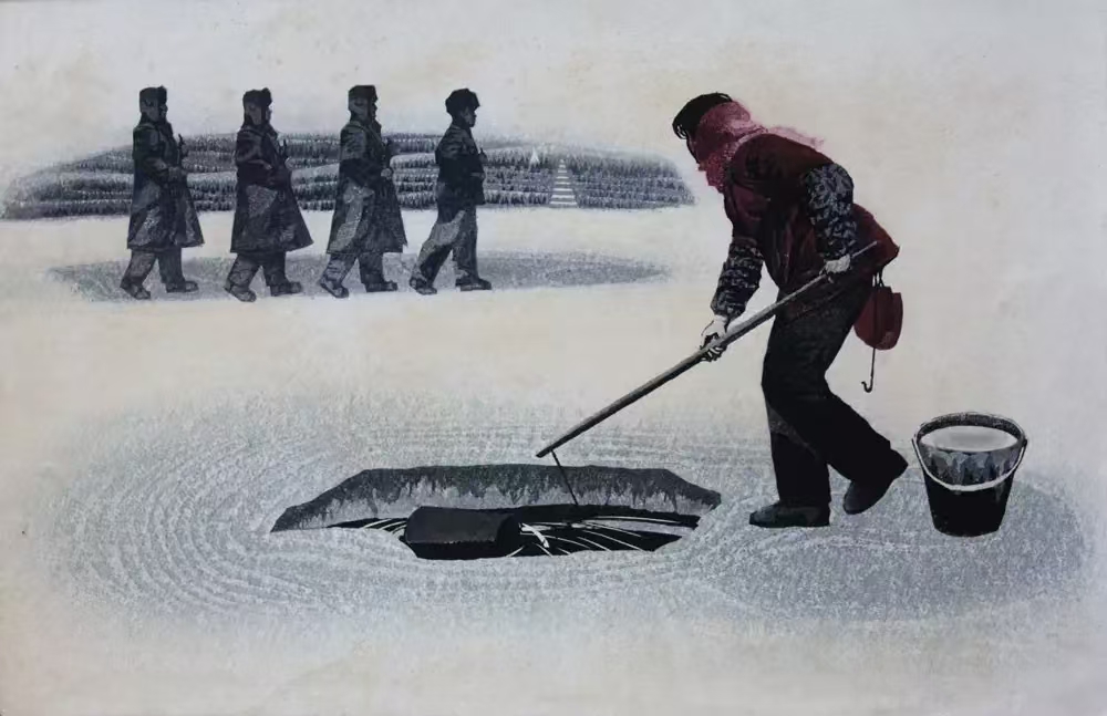 郝伯义是继张作良、晁楣、张祯麒、杜鸿年等为代表的老一辈北大荒版画家之后,带领的北大荒中青年版画创作集群,与时俱进,继往开来,以自己特定的审美体验,真切地展示了那方黑土的广袤与富饶、黑土英魂的伟岸与崇高,凸现出茫茫雪原上各个时期垦荒者、建设者们的生活、命运与心声。