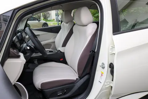 方向盘是三辐式设计,粗细适中,握感饱满,不会因为太细而硌手,也不会因为太粗而握不住,男生女生开着都舒服。方向盘上的多功能按键布局合理,左侧是定速巡航相关的控制键,右侧是多媒体和电话按键,按键的反馈清晰,操作时不用低头看就能摸到。仪表盘是一块液晶屏幕,显示的信息丰富,车速、电量、续航里程等关键数据一目了然,屏幕的亮度会根据外界光线自动调节,白天太阳大的时候不反光,晚上开夜车也不刺眼,贴心。座椅的配色有多种选择,其中浅色系的搭配受家庭用户喜欢,显得车内空间更明亮,就算是深色内饰,也会用浅色缝线点缀,不会显得压抑。座椅的靠背和坐垫做了一定的弧度处理,能贴合身体的曲线,尤其是腰部支撑部分,长时间开车也不会觉得腰酸背痛,这点对经常接送孩子的家长来说重要。