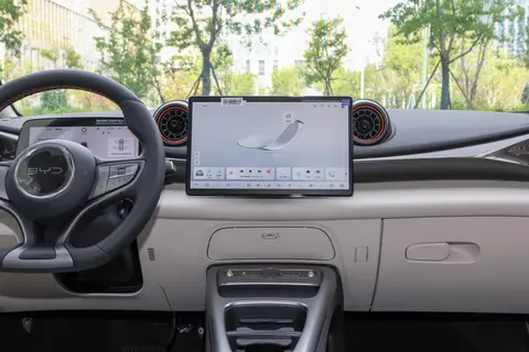 坐进车里,内饰的整体氛围温馨舒适,和外观的亲和风格保持一致。中控台的造型简洁,没有复杂的线条,上方是软性材质包裹,用手按压能感觉到一定的弹性,不像硬塑料那样硌手,触感不错。中控台的中间是一块悬浮式的中控屏,尺寸大小适中,不会因为太大显得突兀,也不会因为太小看着小气,屏幕的分辨率和反应速度尚可,导航、音乐这些常用功能的图标很大,操作起来直观方便,就算是不太会用智能设备的长辈,教两次能上手。屏幕下方保留了几个常用的物理按键,比如空调开关、音量调节等,开车的时候盲操作不容易出错,比全触屏的设计实用。