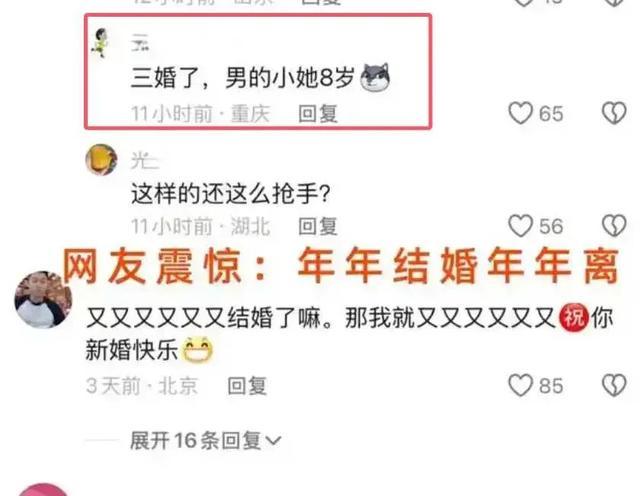 “这女的都三婚了,还找个小这么多的,肯定不靠谱。”也有人认为,只要他们自己觉得幸福就好。