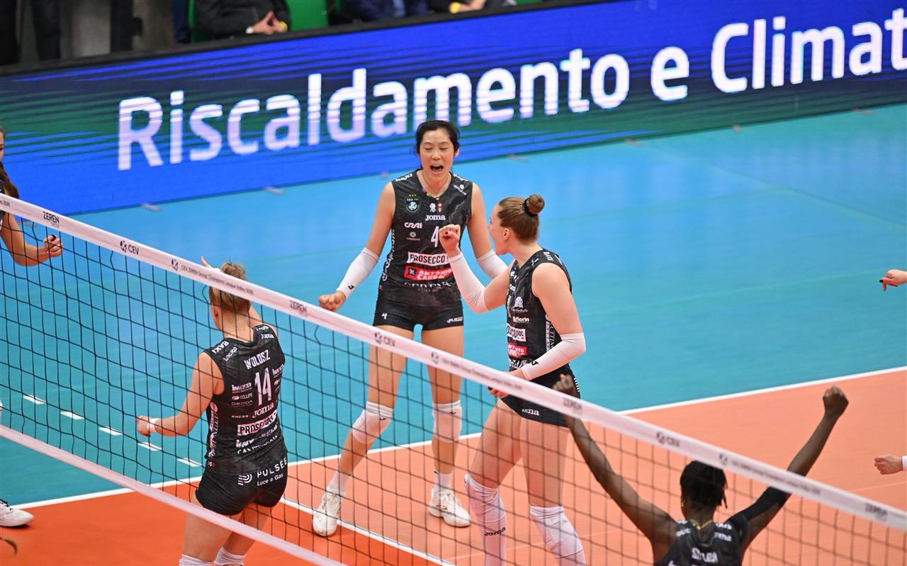 最终,在先赢两局的情况下,科内利亚诺女排2:3不敌泽仁体育女排,不过由于积分优势,所以还是顺利晋级到了欧冠四强,加比这场比赛继续缺阵,朱婷46扣23中1拦3失误,拿到了24分,以惊艳的表现率队打进了半决赛,这也是朱婷受伤康复以后,在欧冠赛场得分的又一个新高。同时朱婷还接了27个一传,这对她的体能又是很大的考验,如果这场比赛赢球的话,MVP肯定还是朱婷的,但主教练桑塔雷利在确保晋级的情况下,还是想锻炼替补阵容,增加板凳深度。