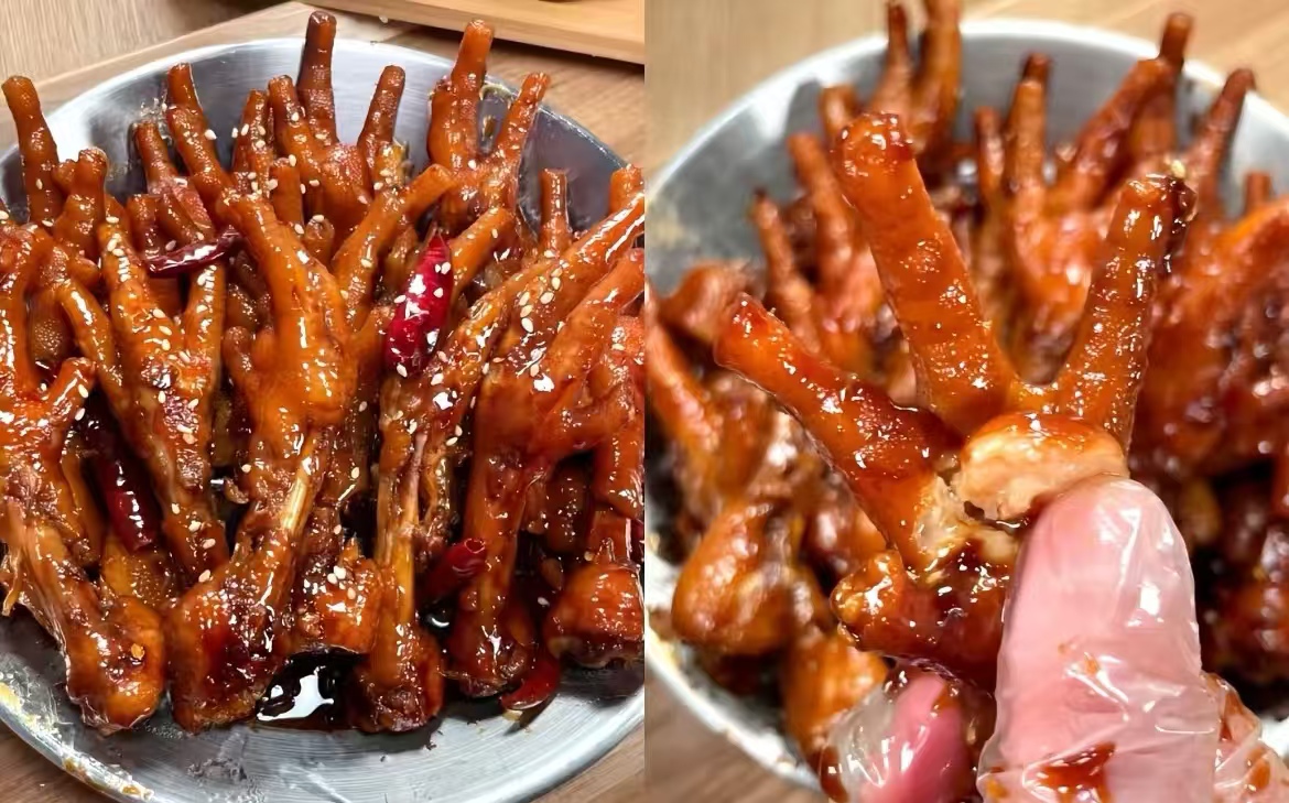 先把鸡爪洗净,剪掉指甲,这一步可别偷懒,不然指甲里藏着的脏东西会影响口感哦。把处理好的鸡爪冷水下锅,加入姜片和料酒,大火煮开后撇去浮沫,捞出鸡爪用清水冲洗干净。这一步能去除鸡爪的腥味,让味道更纯正。接下来调个灵魂酱汁,在碗里加入适量的生抽、老抽、冰糖、八角、桂皮、香叶和干辣椒,搅拌均匀。把鸡爪放入锅中,倒入调好的酱汁,再加入没过鸡爪的清水,大火煮开后转小火慢慢炖煮。炖煮的过程中要不时翻动一下鸡爪,让它们均匀上色。大概炖煮40 - 50分钟,直到鸡爪变得软糯,汤汁变得浓稠,一道香气扑鼻的酱鸡爪就完成啦!