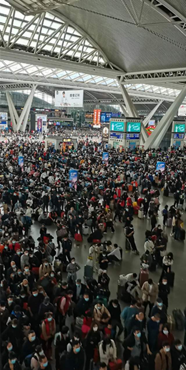 网友拍摄广州南站的景象。临近过年很多外来者辛苦一年,也打算回家过个舒服的除夕。