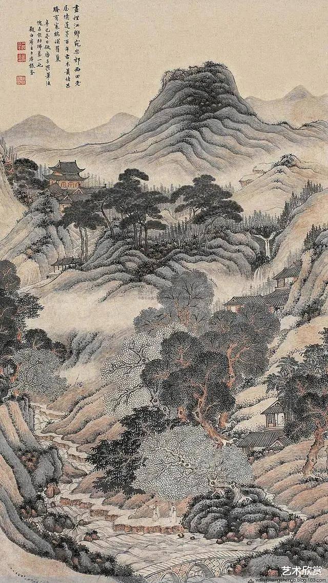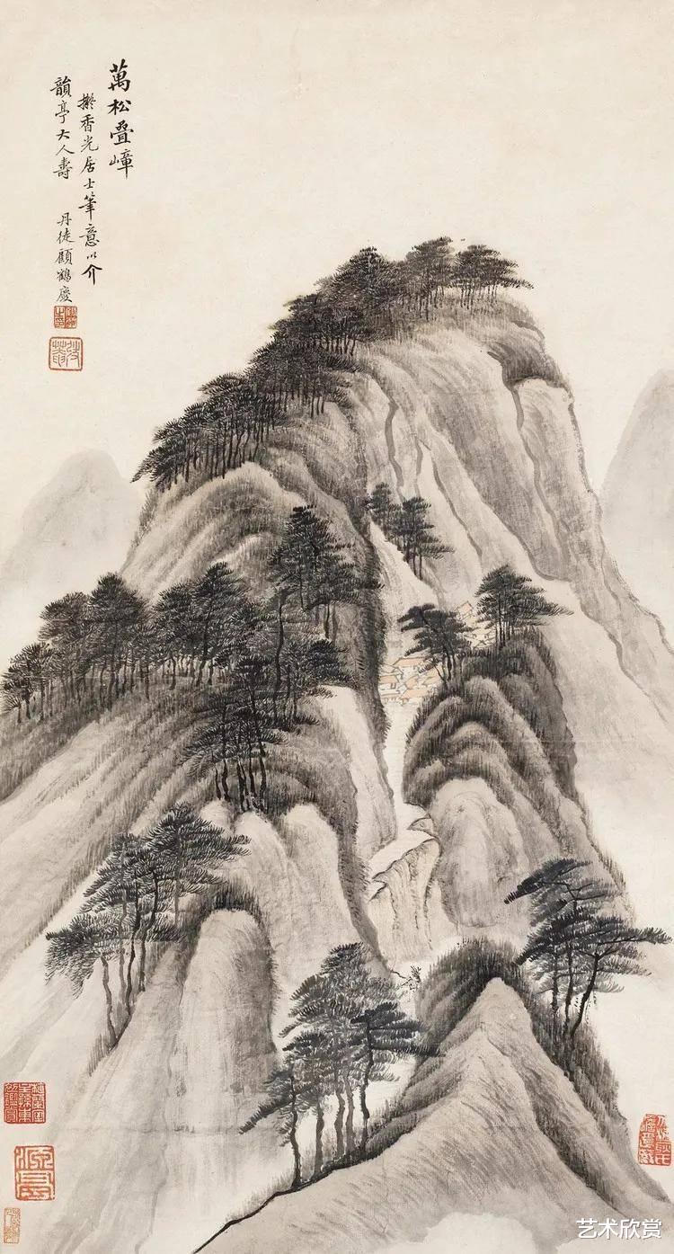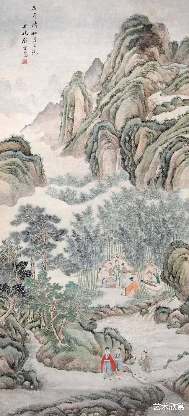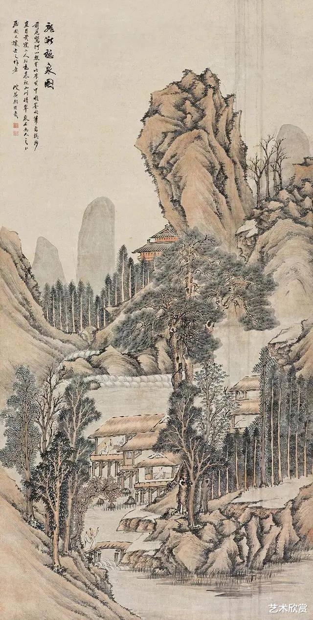 顾鹤庆的画,既有宋人的严谨,又含元人的逸趣,却无前人的孤寂冷清。他的山水虽幽深,却透着生机;泉流虽静谧,却暗藏欢愉。一草一木,皆是对生活的热爱,一笔一墨,尽显盛世风华。