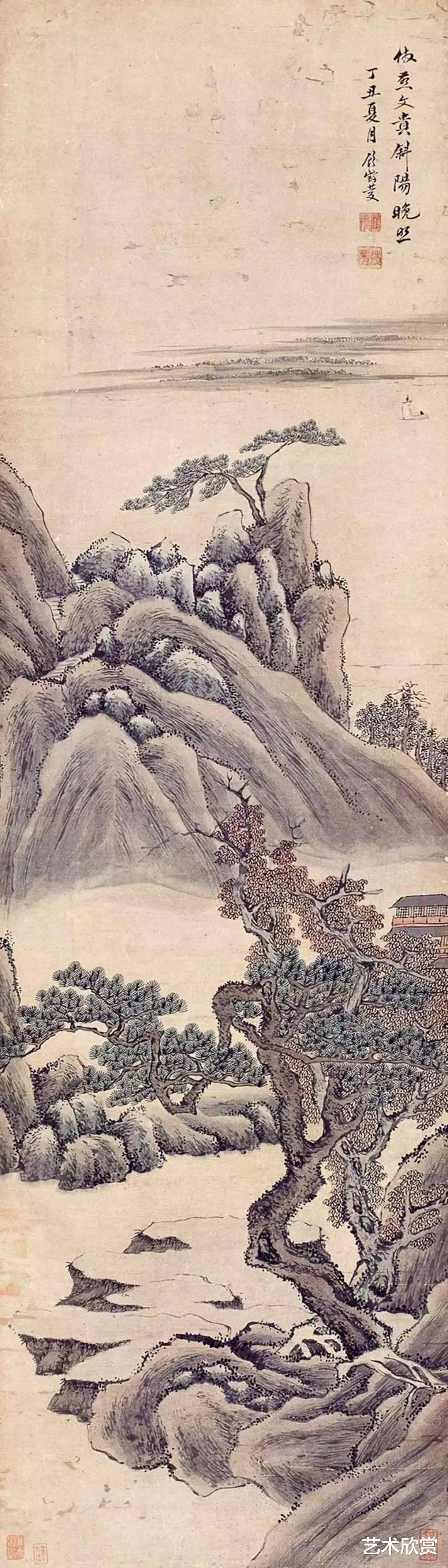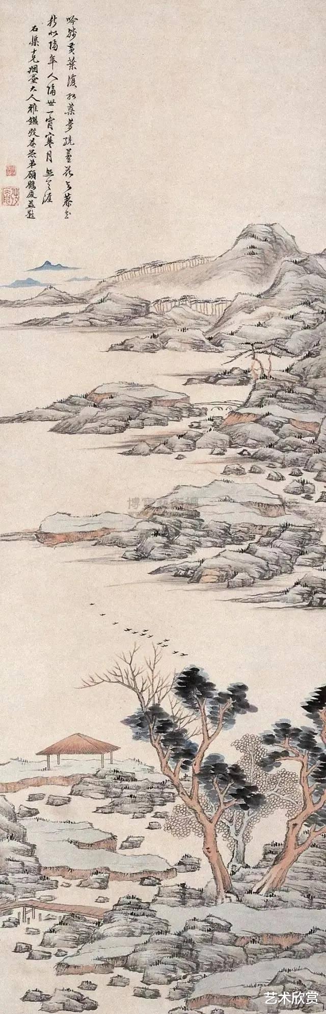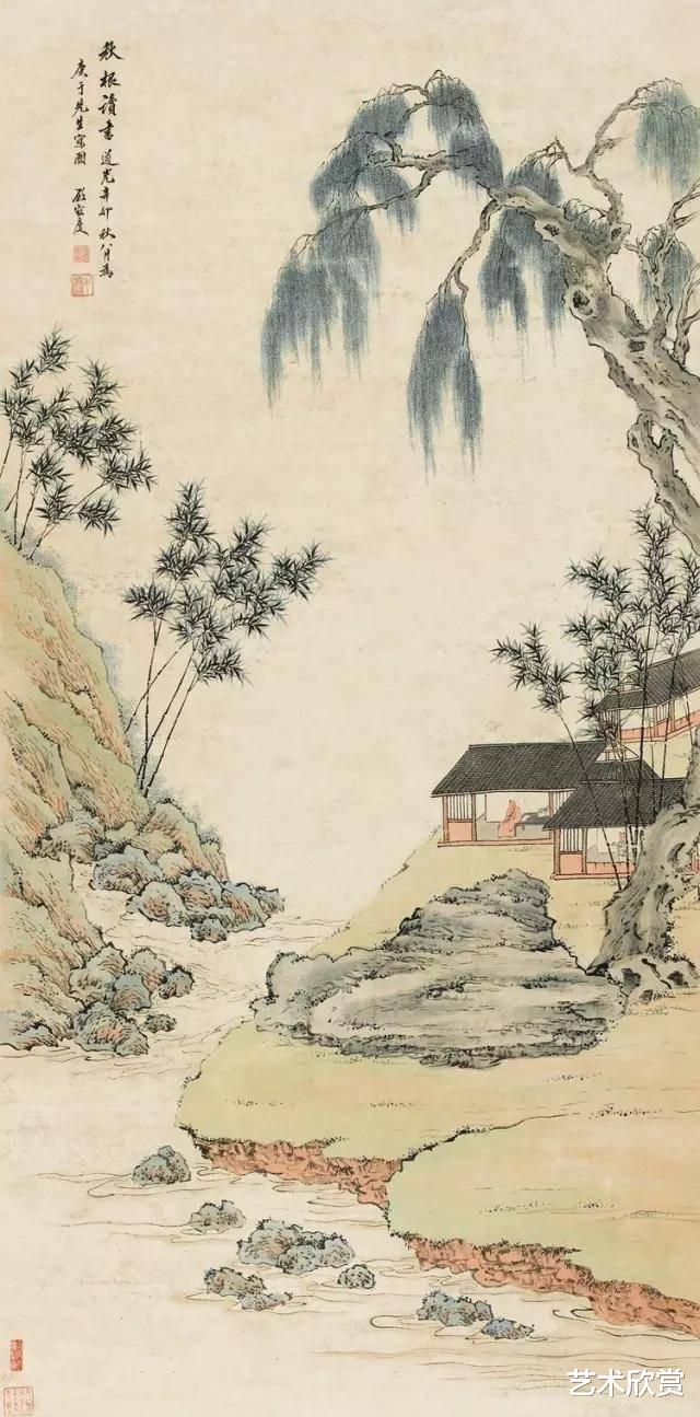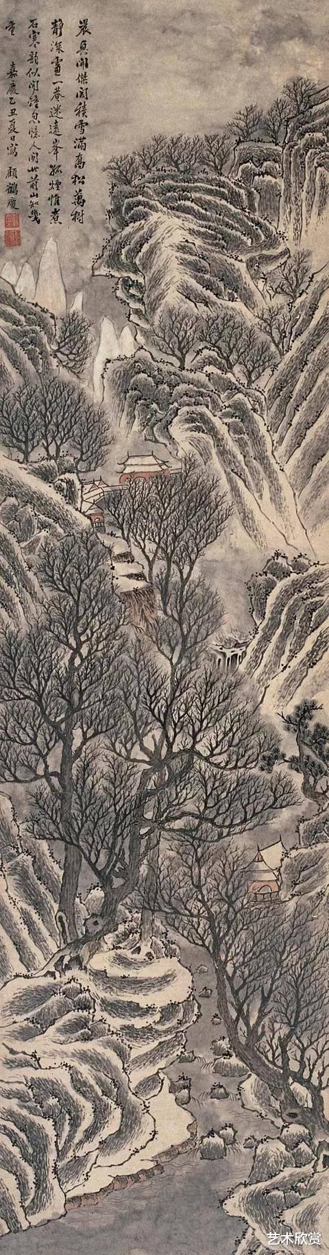 顾鹤庆的画,既有宋人的严谨,又含元人的逸趣,却无前人的孤寂冷清。他的山水虽幽深,却透着生机;泉流虽静谧,却暗藏欢愉。一草一木,皆是对生活的热爱,一笔一墨,尽显盛世风华。