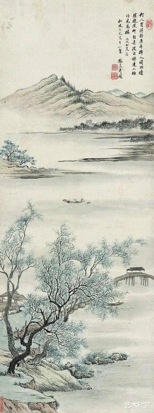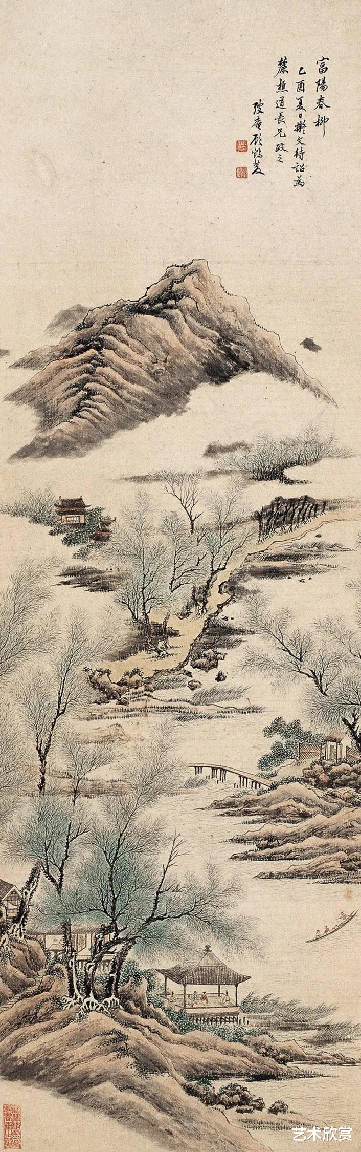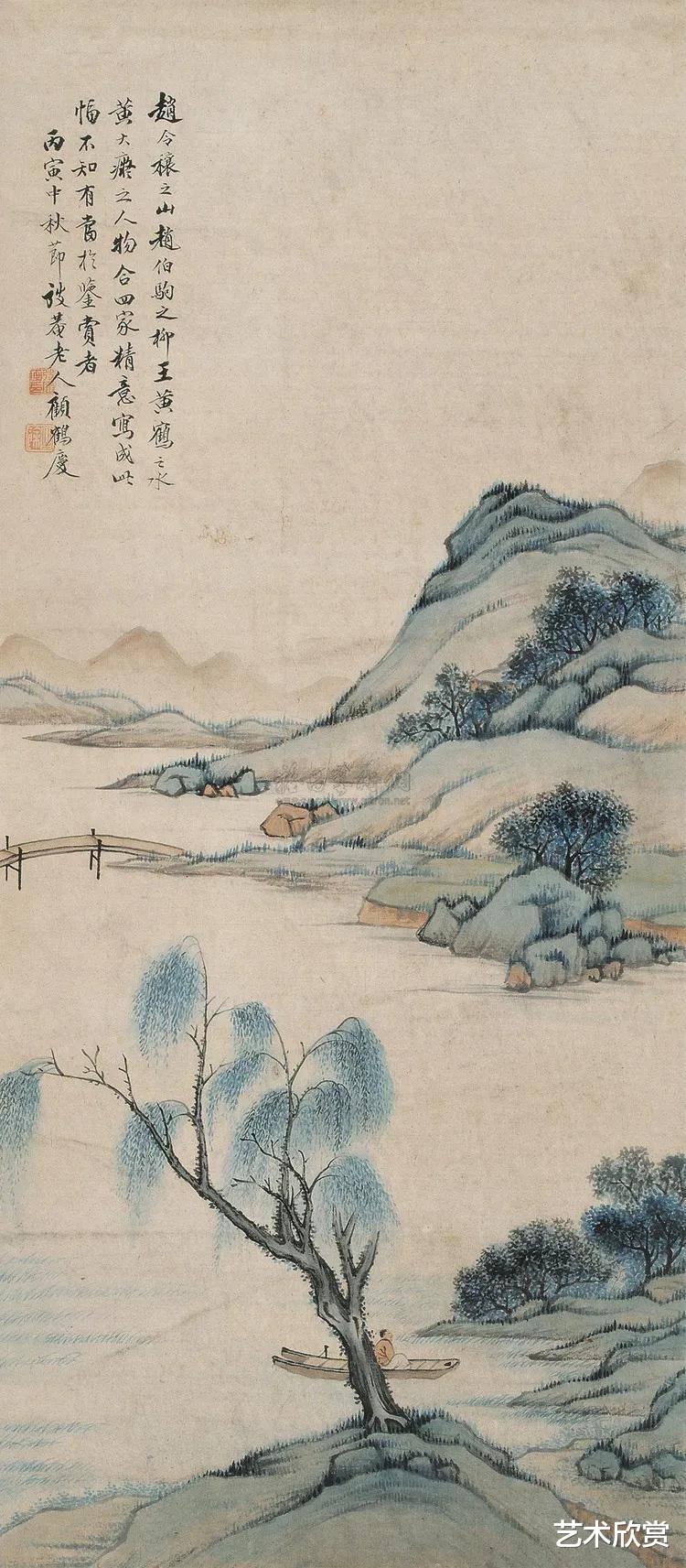 他生于乾隆盛世,江南的烟雨滋养了他的才情。镇江的山林、驿道的垂柳,皆成其画中常客。他笔下的柳,春则柔枝拂水,夏则浓荫蔽日,秋则疏叶摇风,冬则寒条映雪,每一帧皆如诗如歌。与挚友张崟并称“张松顾柳”,二人志趣相投,共倡“师法自然,自以为法”,开创了“京江派”的独特风貌。
