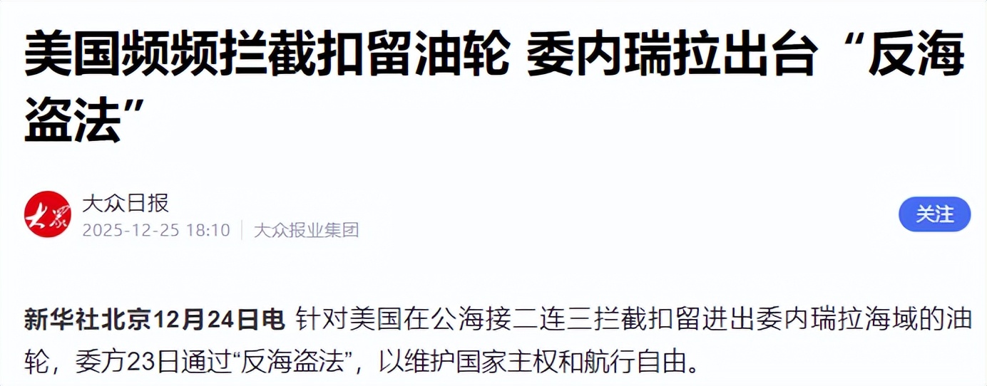 公海能不能随便拦船?油轮还能不能正常跑?这事不只关委内瑞拉,也不只关美国,很多人心里已经开始发紧了。