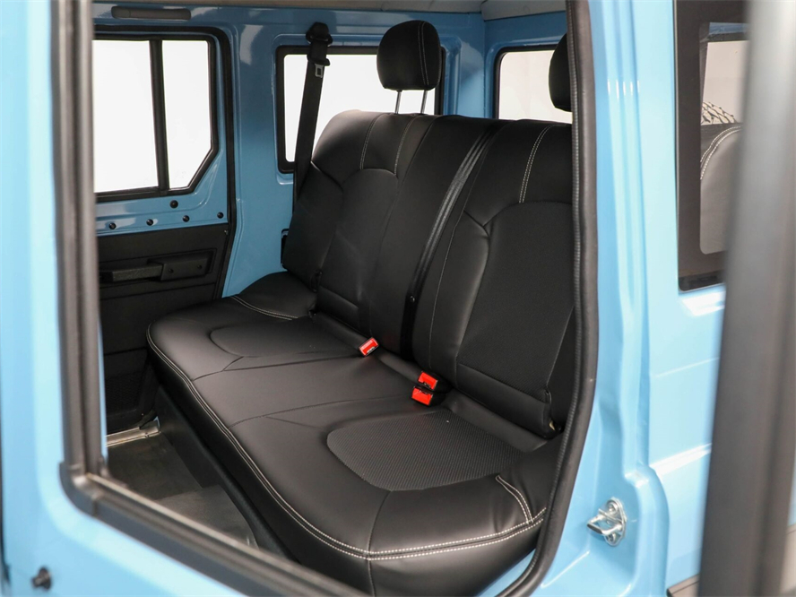 侧面设计上这款车型跟大G可是拥有异曲同工之妙,新款车型轴距以及尺寸都有所加强,气场也比老款强大了不少,尤其是关门声那,那也是妥妥的子弹上膛,另外比较吸引眼球的就是一排铆钉,贯穿式的设计不仅美观,而且是真有用。尾部则是悬挂了一个全尺寸的备胎,还设计了一个非常漂亮的高位刹车灯,谈不上多么漂亮但霸气程度是一点不差。