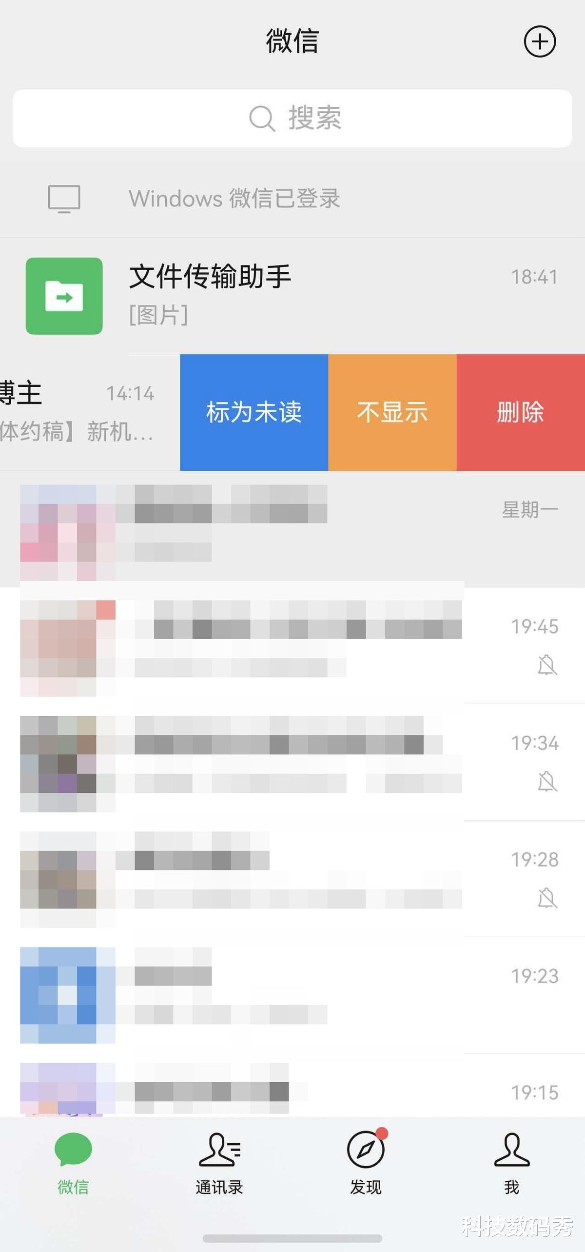 比如之前我用安卓版微信时想要删除消息,会在消息上“长按”,但在鸿蒙版微信中不是这样操作的,想标记已读、删除或不显示,只需轻轻“左滑”即可,这种顺手的交互用习惯了,反而比长按更方便。