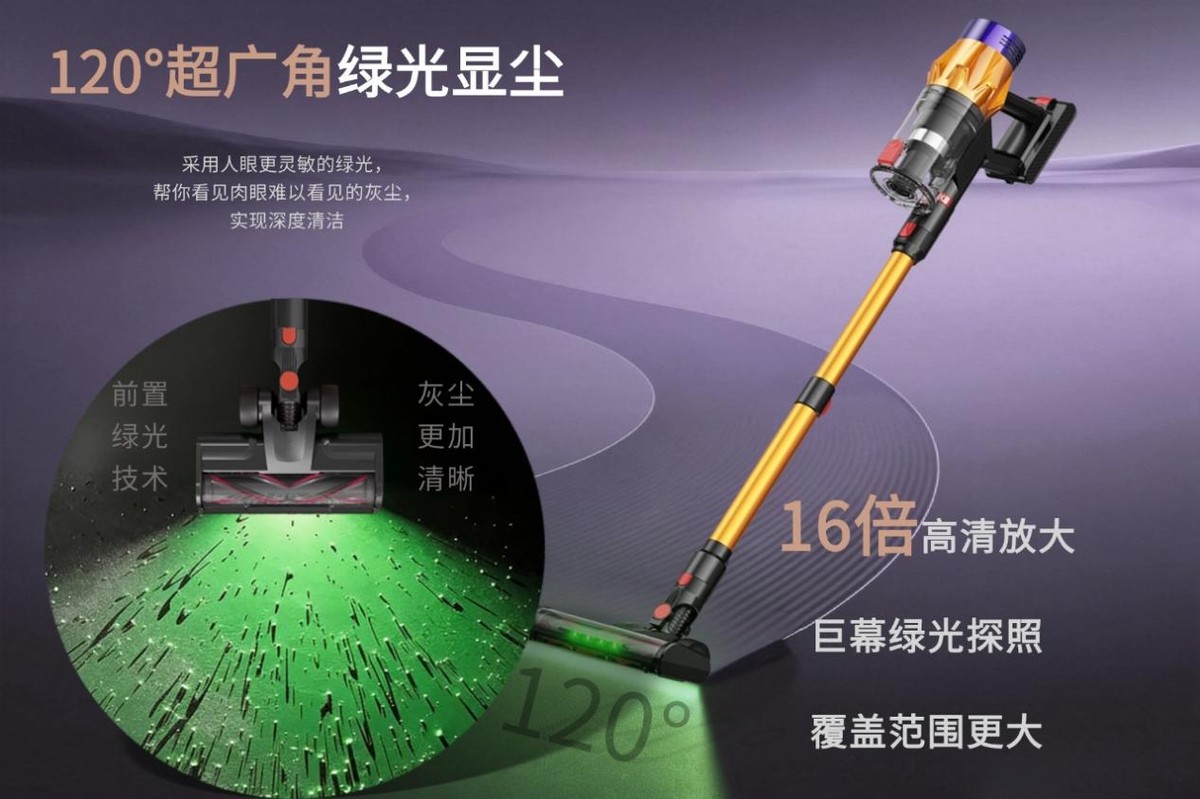 实现高效吸尘和动力稳定的同时,该产品还创新搭载了第三代升级版555nm广角矩阵微尘探测阵列,利用人眼最敏感波长,将60cm范围内的微尘阴影物理放大16倍,实现了亚微米级灰尘的可视化精准捕获。