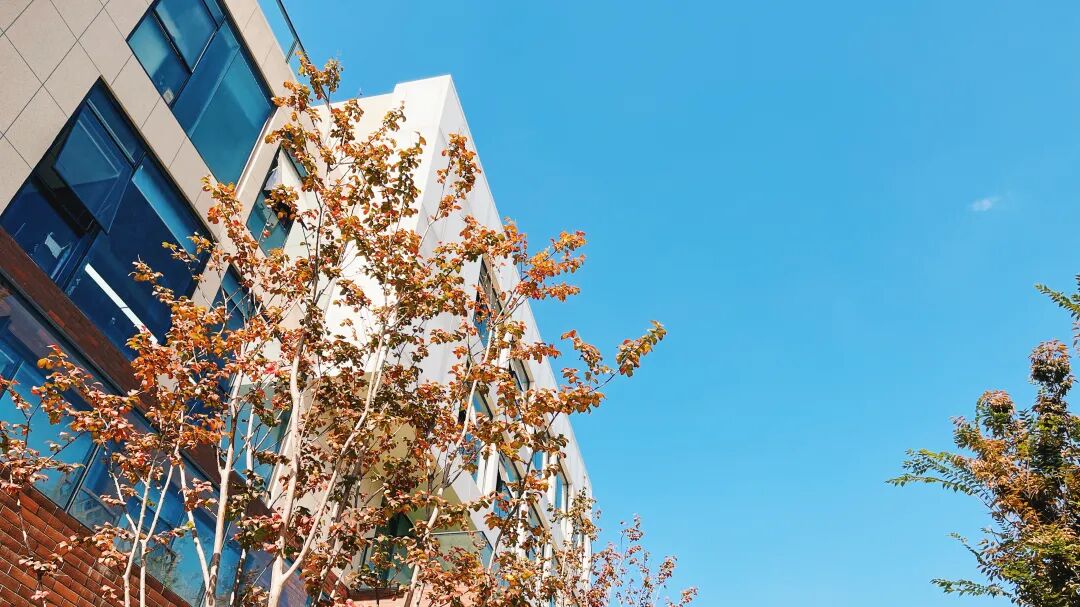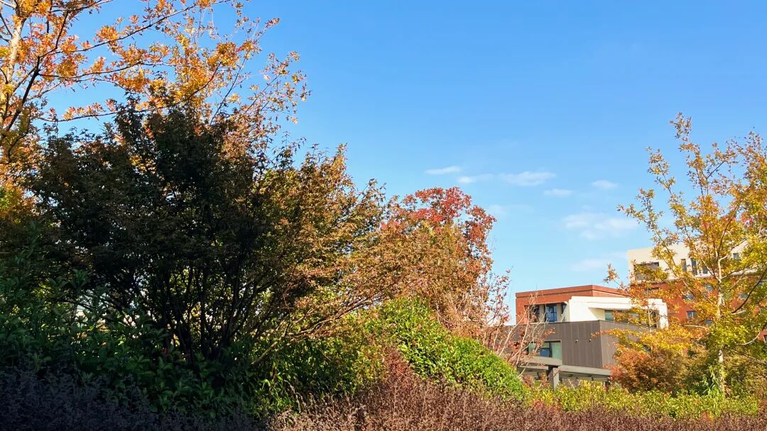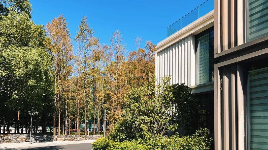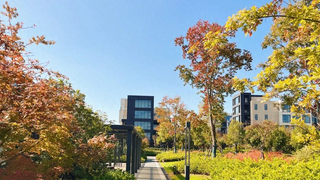 树叶已经开始染红,为园区增添了一抹热烈的诗意。