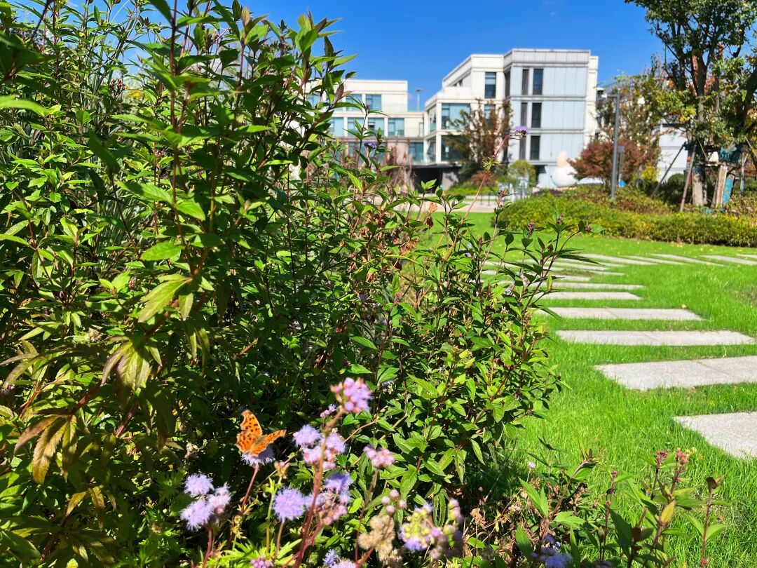 园区精心打造的花境,是另一道亮丽风景。繁花似锦,紫色的小花星星点点地散布其中,在微风中轻轻摇曳。